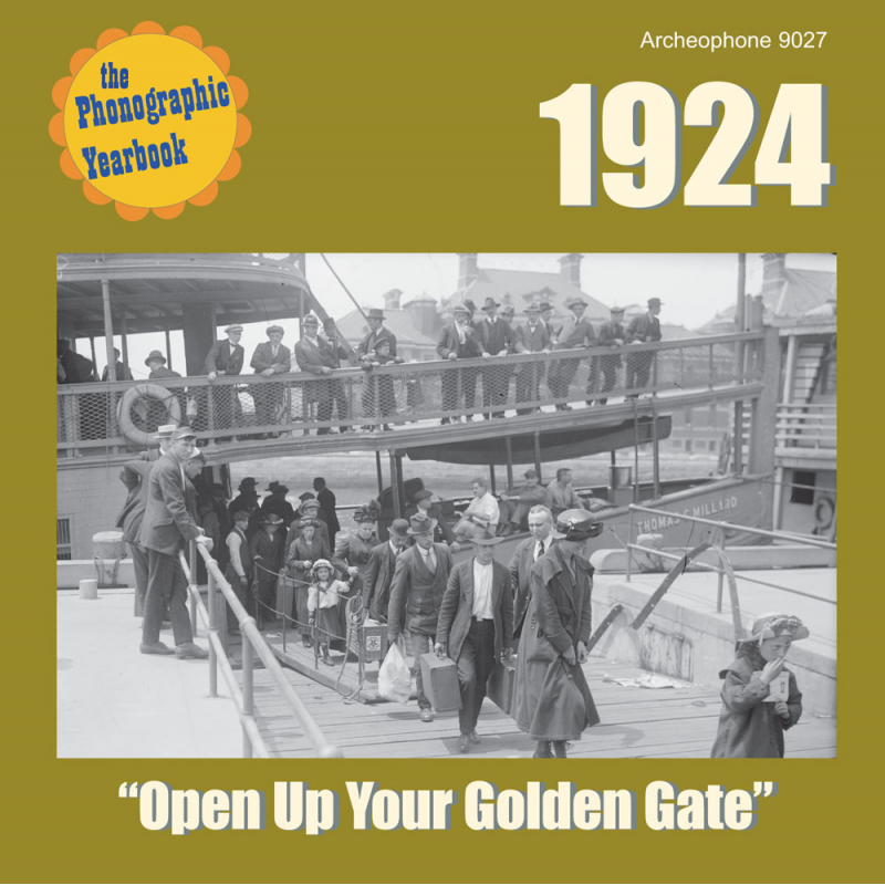 The 24th volume in our Phonographic Yearbook series, 1924: “Open Up Your Golden Gate” features 25 selections from the year the Johnson-Reed Act ignited national conversation about immigration and Calvin Coolidge's re-election campaign was backed by stars like Al Jolson. Highlights include “Charleston,” Isham Jones' classic “It Had to Be You," Wendall Hall's "It Ain't Gonna Rain No Mo'," and "My Way's Cloudy," the debut recording by future superstar Marian Anderson.